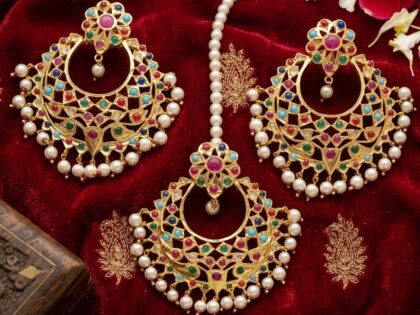 Jasgeet earrings tika set(multicolour)