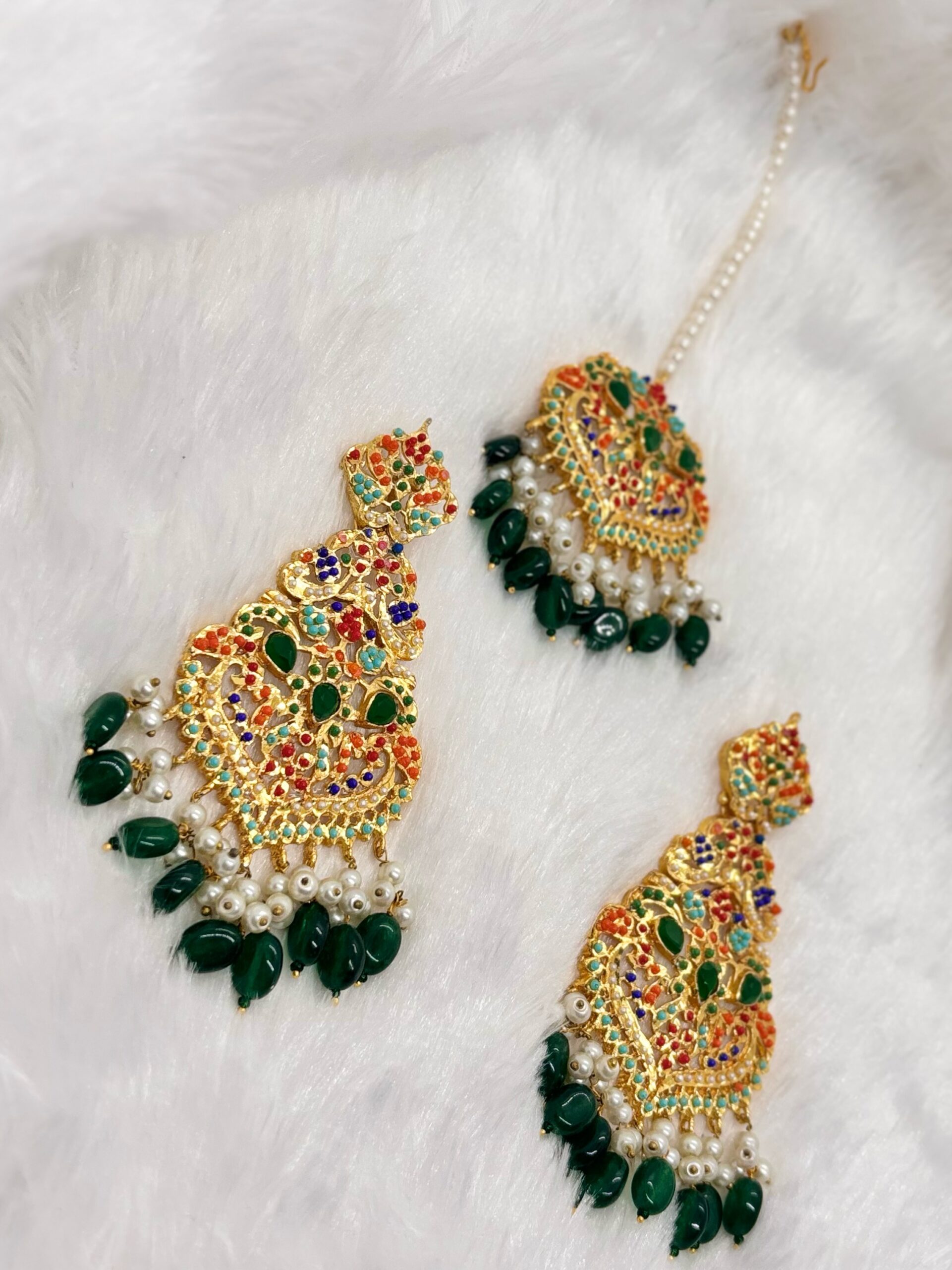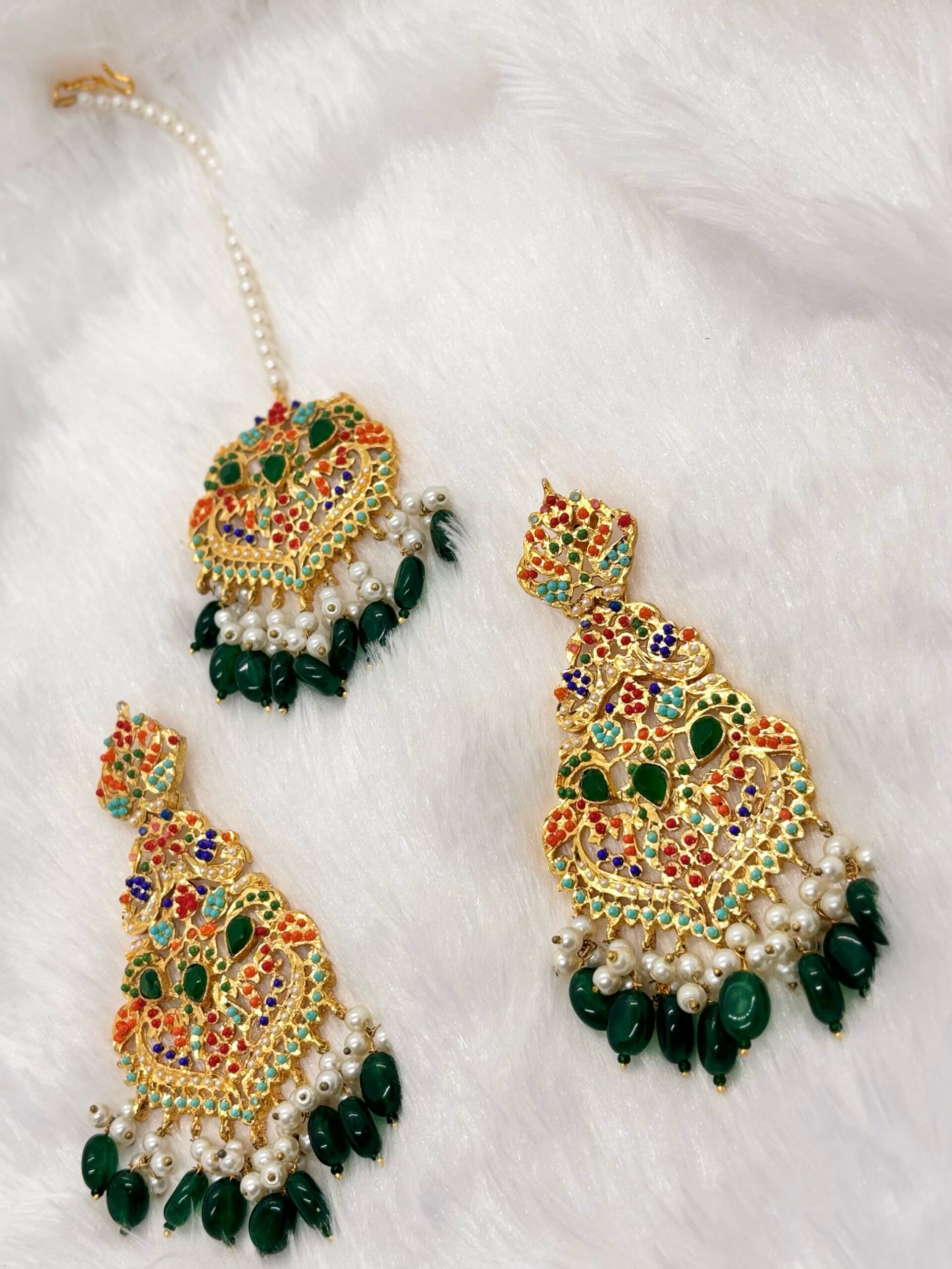 • Elegant imported designer earrings with matching maang tika