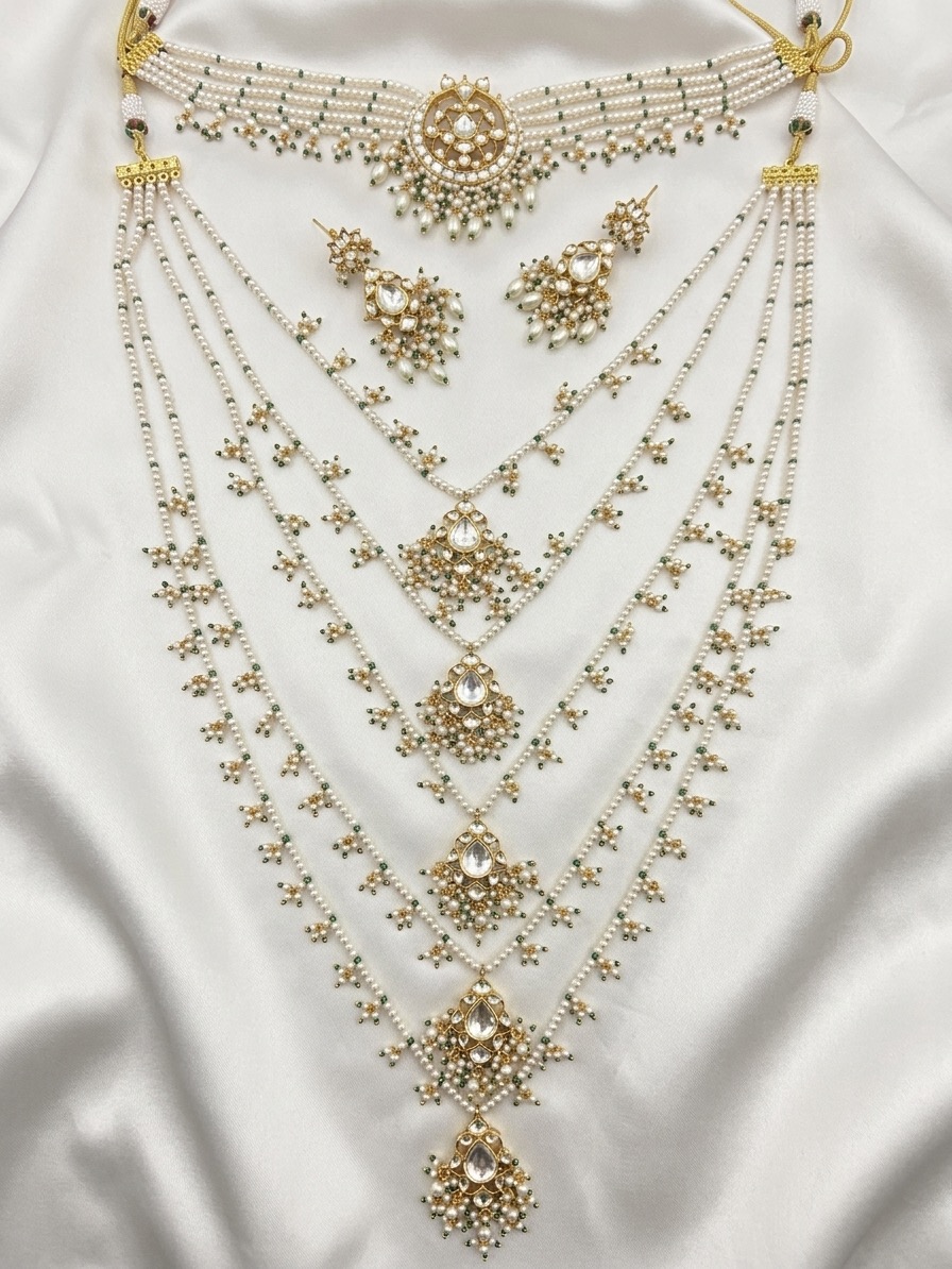 - Regal Pachi Kundan layered ranihaar set with matching earrings and choker