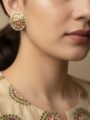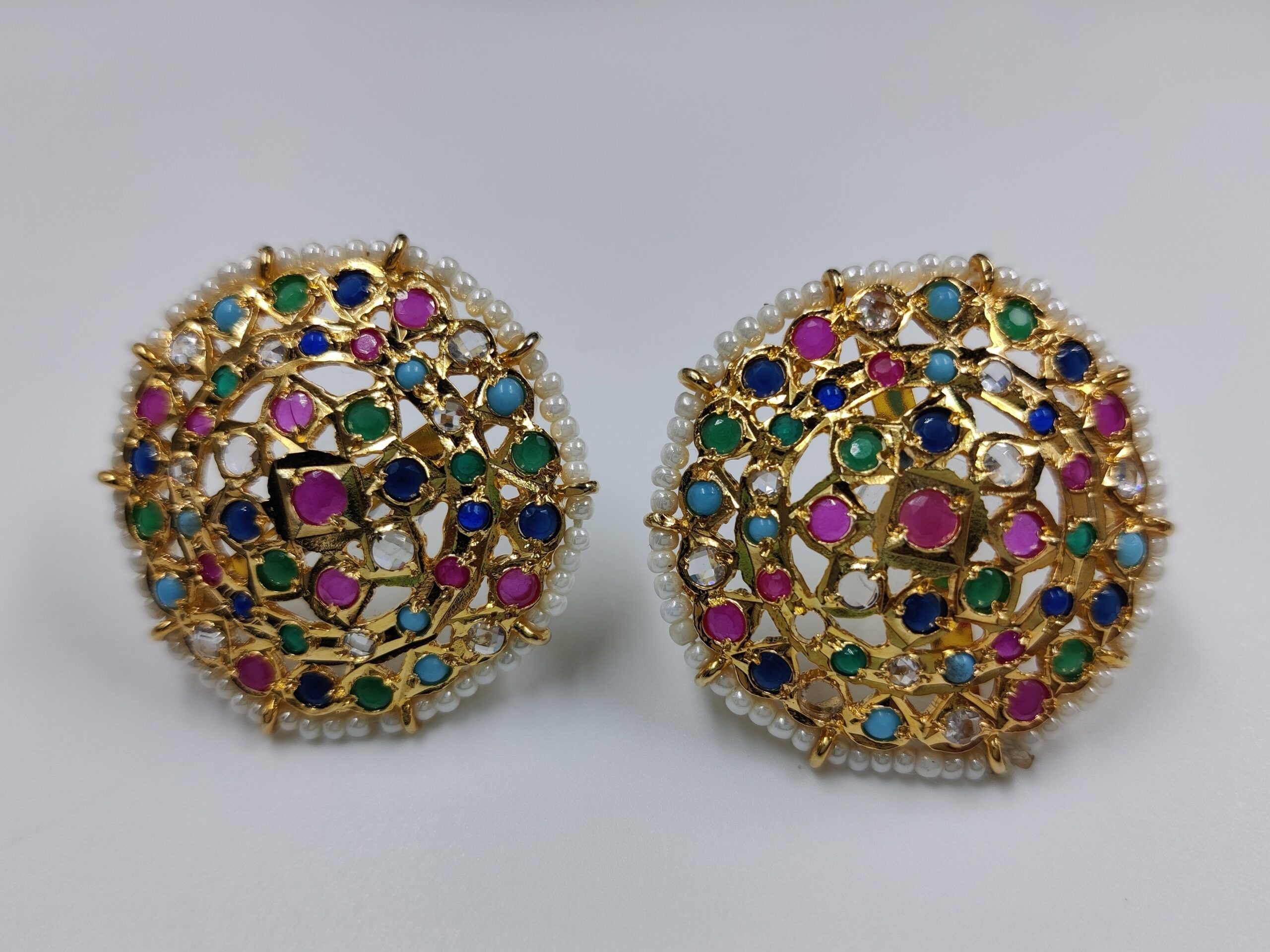 • Elegant gold plated polki navratan stud earrings inspired by traditional heritage jewellery.