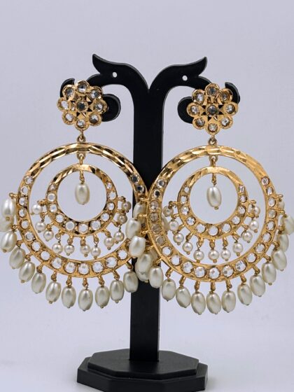 Hyderabadi Polki Pearl Hoop Earrings