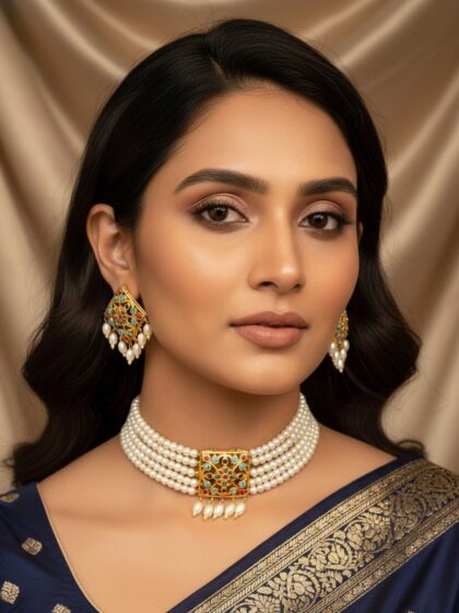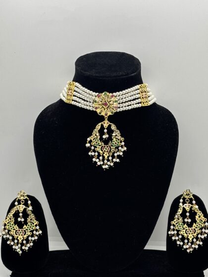 - Stunning Hyderabadi Polki choker set paired with statement chandbali earrings