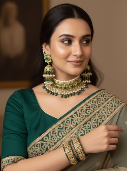 - Complemented with matching chandbali earrings for a complete festive ensemble