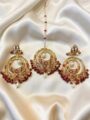 - Elegant Jadau chandbali earrings paired with a matching tika