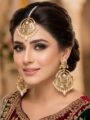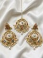 - Elegant Jadau chandbali earrings paired with a matching tika