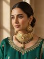 Pair this regal heavy choker set with a silk saree or an embellished lehenga to exude royal sophistication.