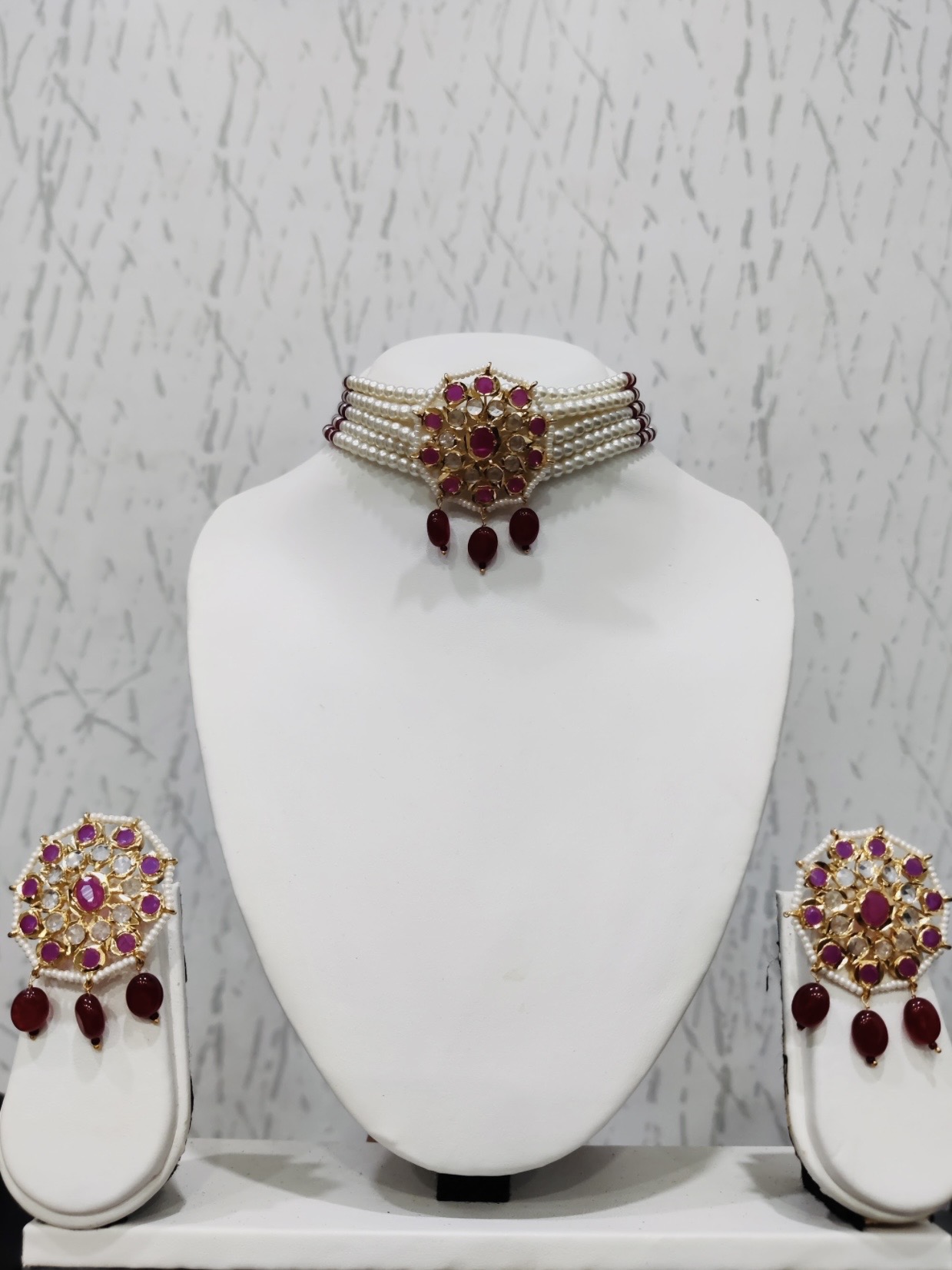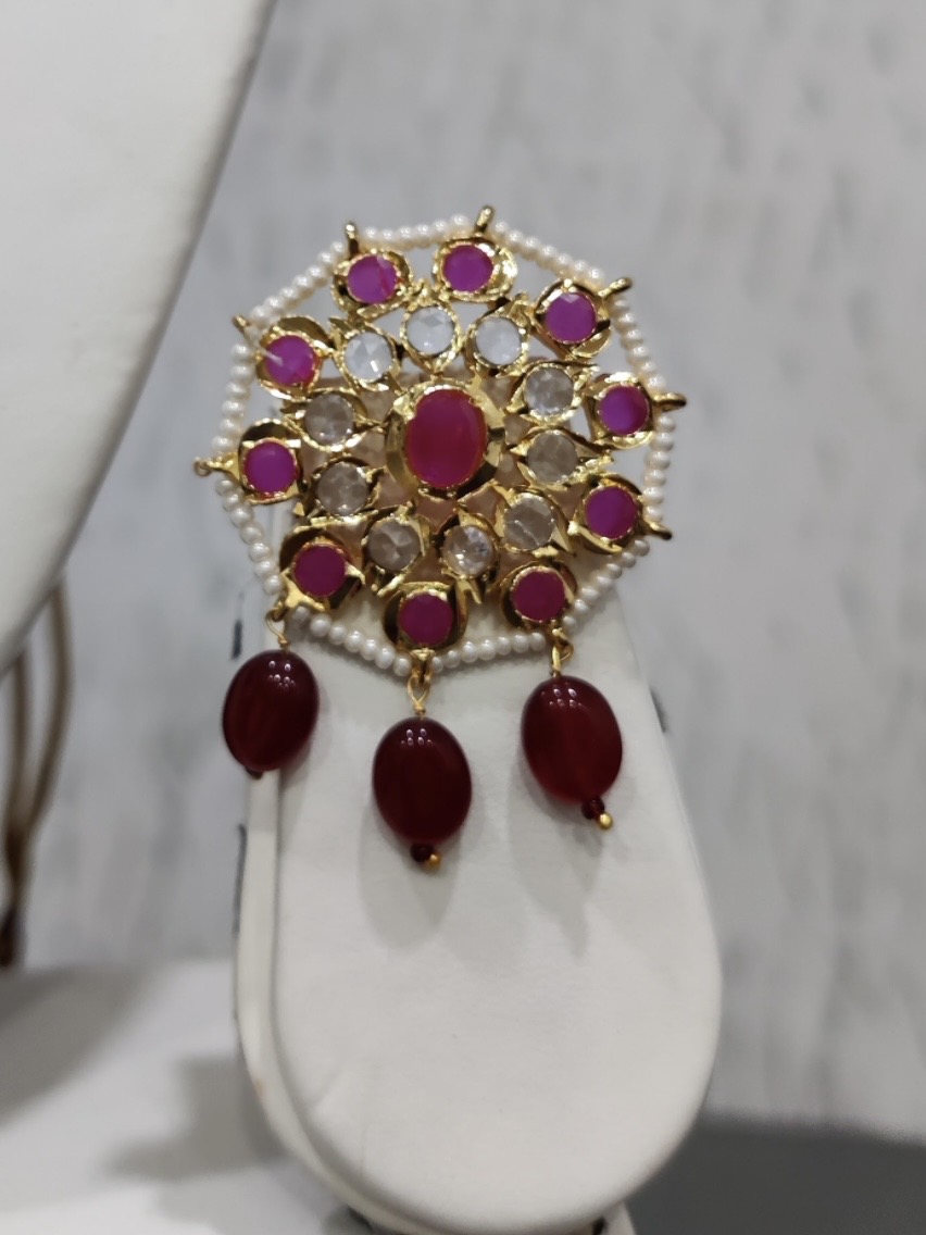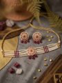 - Features a statement Polki centerpiece with ruby-toned accents