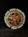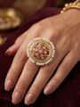 - Elegant gold plated polki statement ring designed in a bold big-size circular motif.