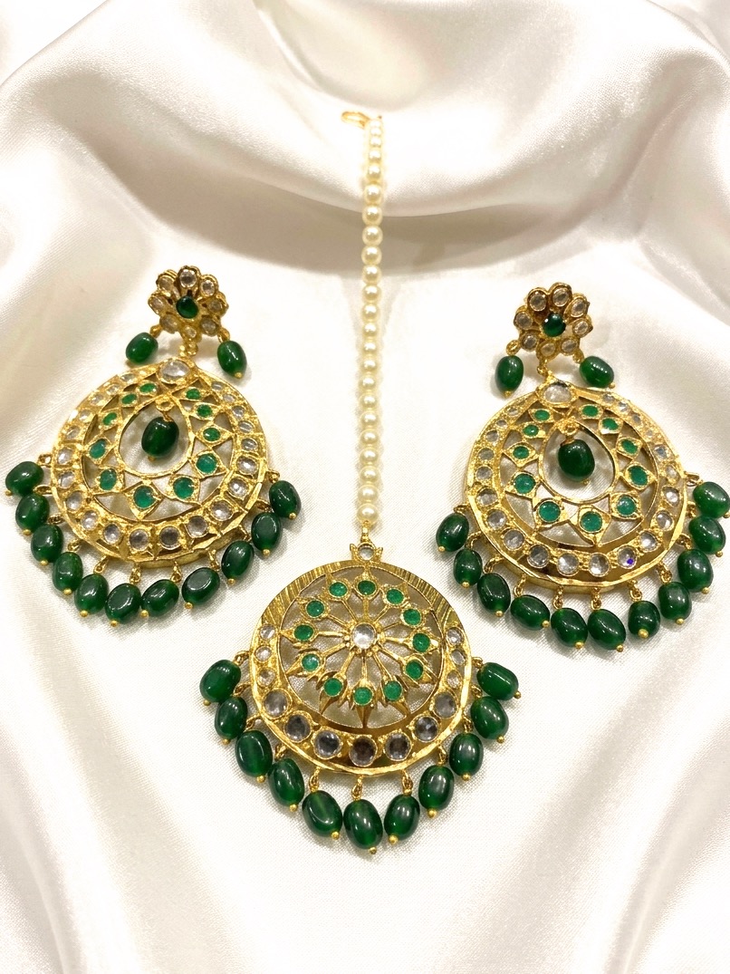 Hyderabadi Emerald tone Chandbali & Tika Set