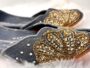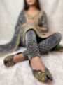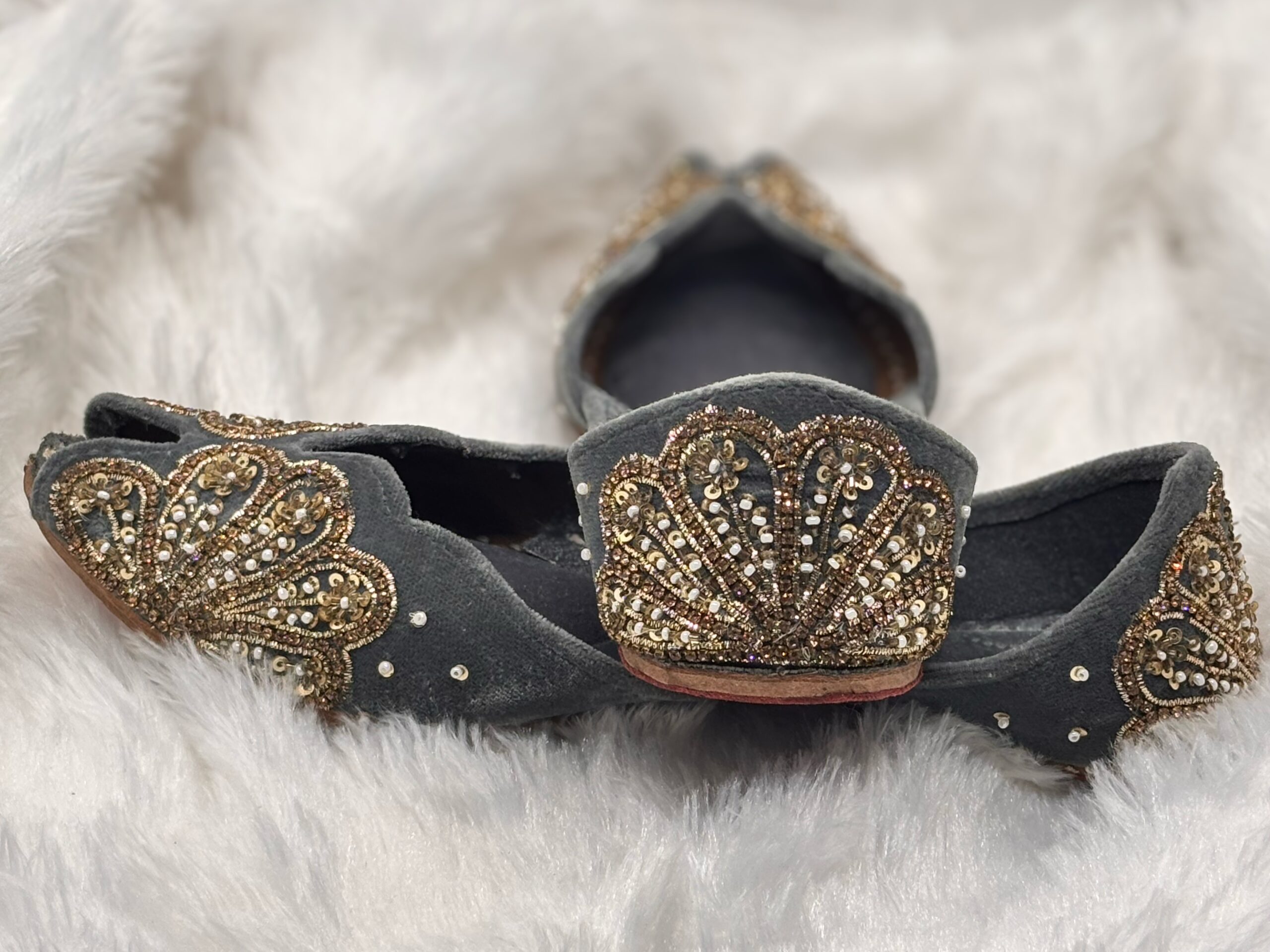 • Elegant handcrafted velvet jutti featuring intricate traditional handwork and embroidery.