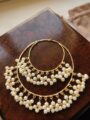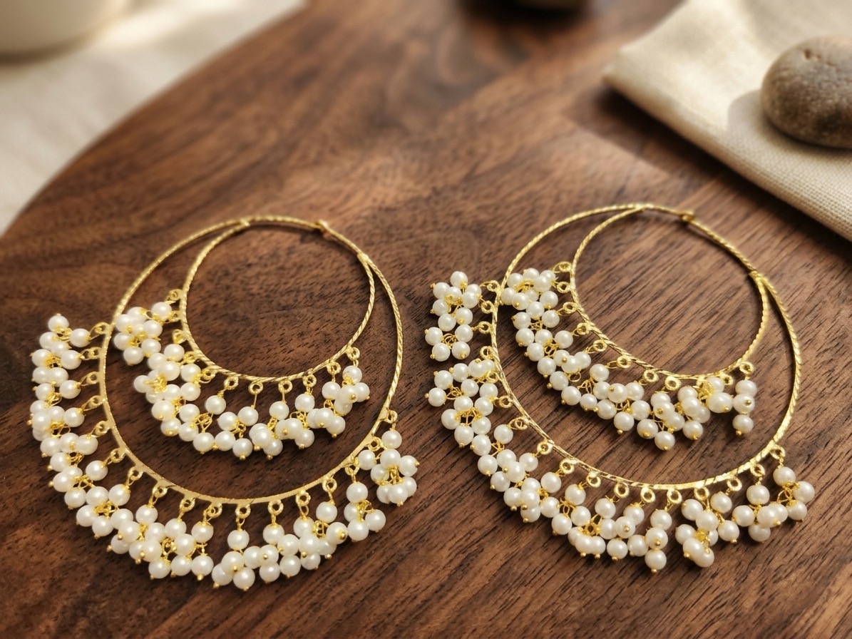 - Elegant baali-style hoop earrings adorned with delicate pearl clusters
