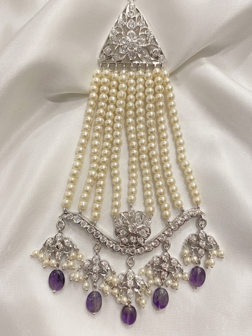 Tags: ad stone passa, bridal head jewellery, customizable jewellery, hyderabadi passa, pearl jhoomar, purple drop jewellery, silver jhoomar, silver plated jewellery