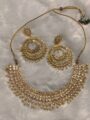 Celebrate timeless elegance with this exquisite Hyderabadi gold plated necklace set, paired with stunning big chandbali earrings. Crafted with intricate traditional detailing, the necklace reflects classic Hyderabadi artistry and graceful charm.