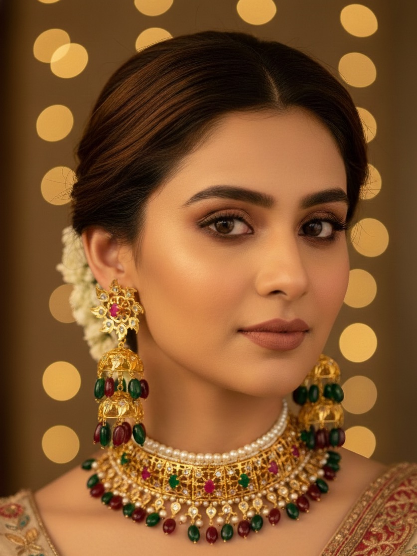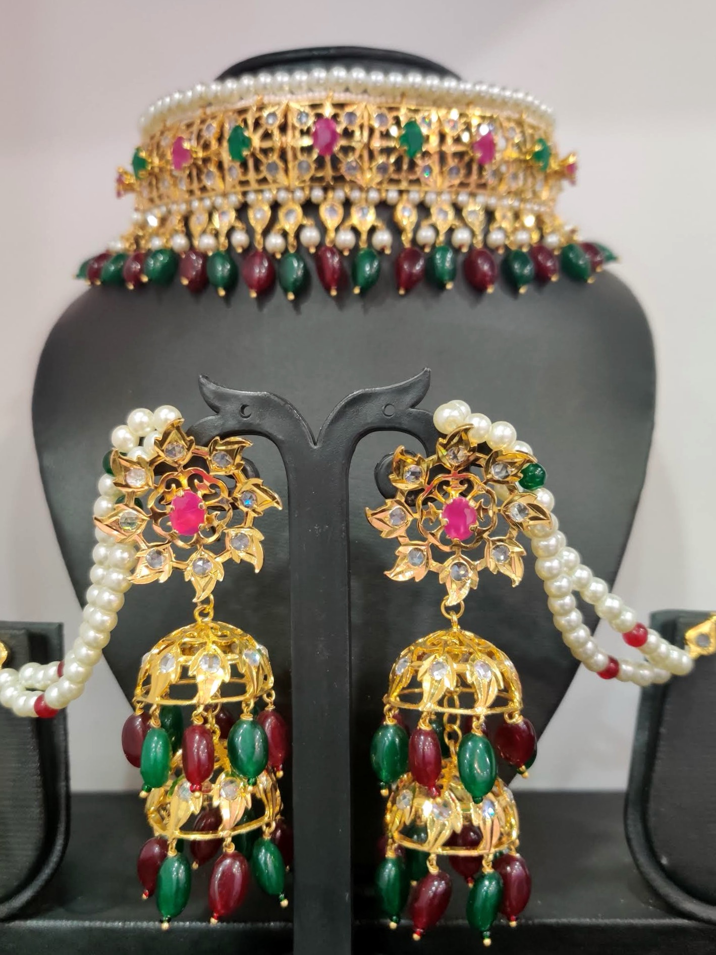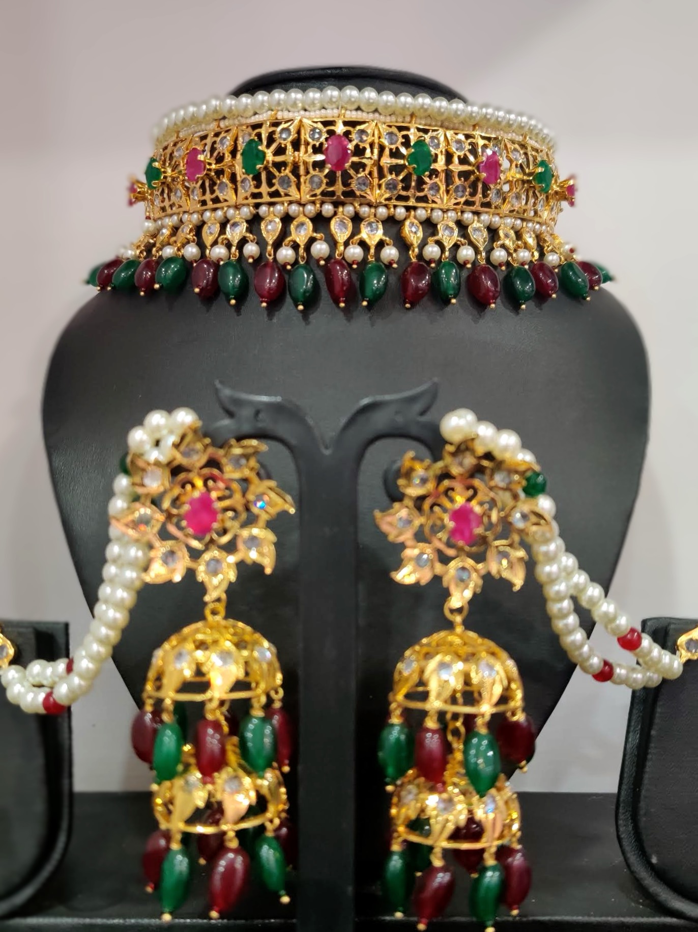 Nizami Hyderabadi Choker Set with Double Layer Jhumka