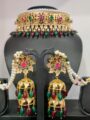 - Elegant Nizami style Hyderabadi polki choker set featuring a statement choker with matching double layer jhumka earrings.