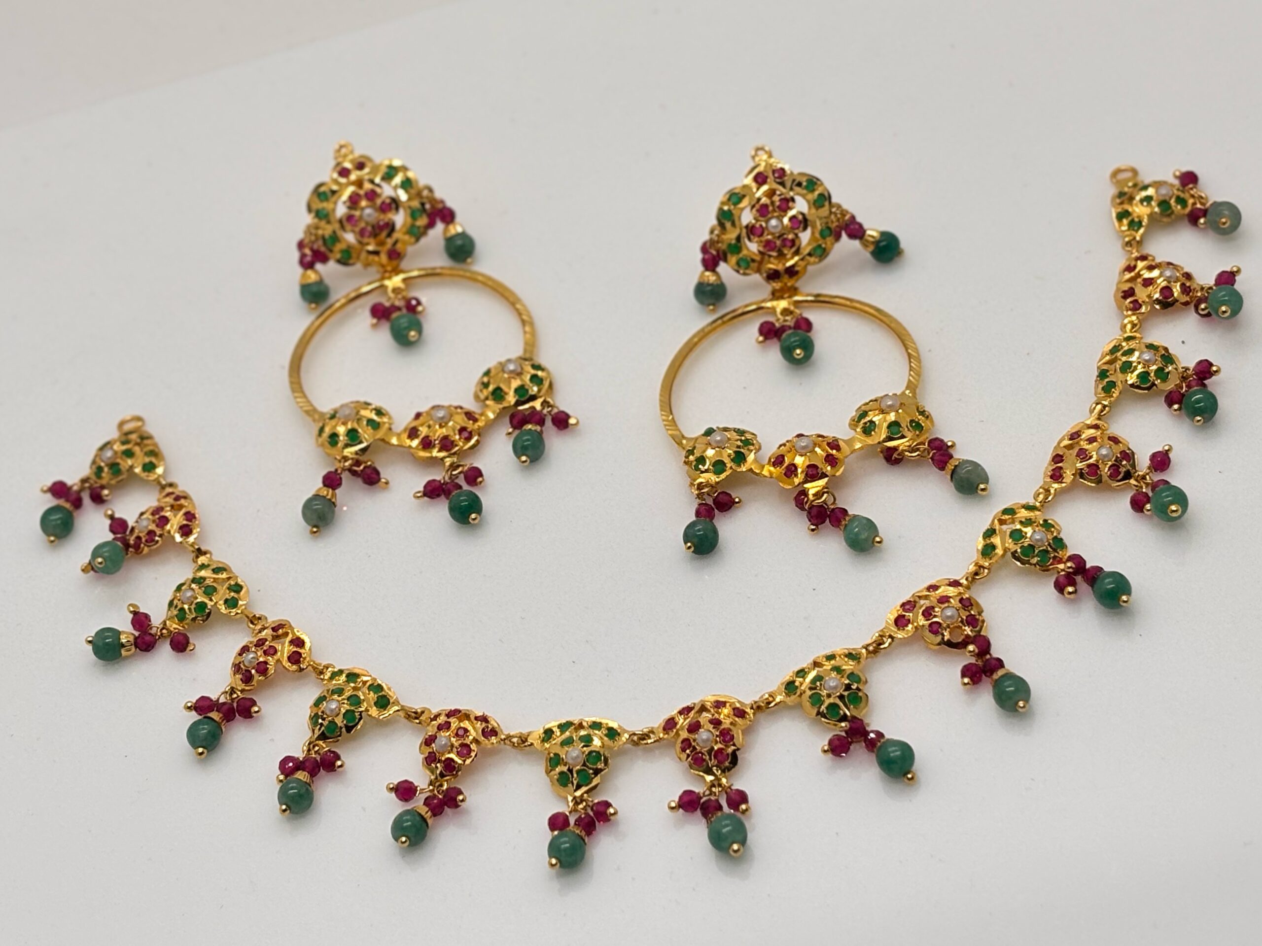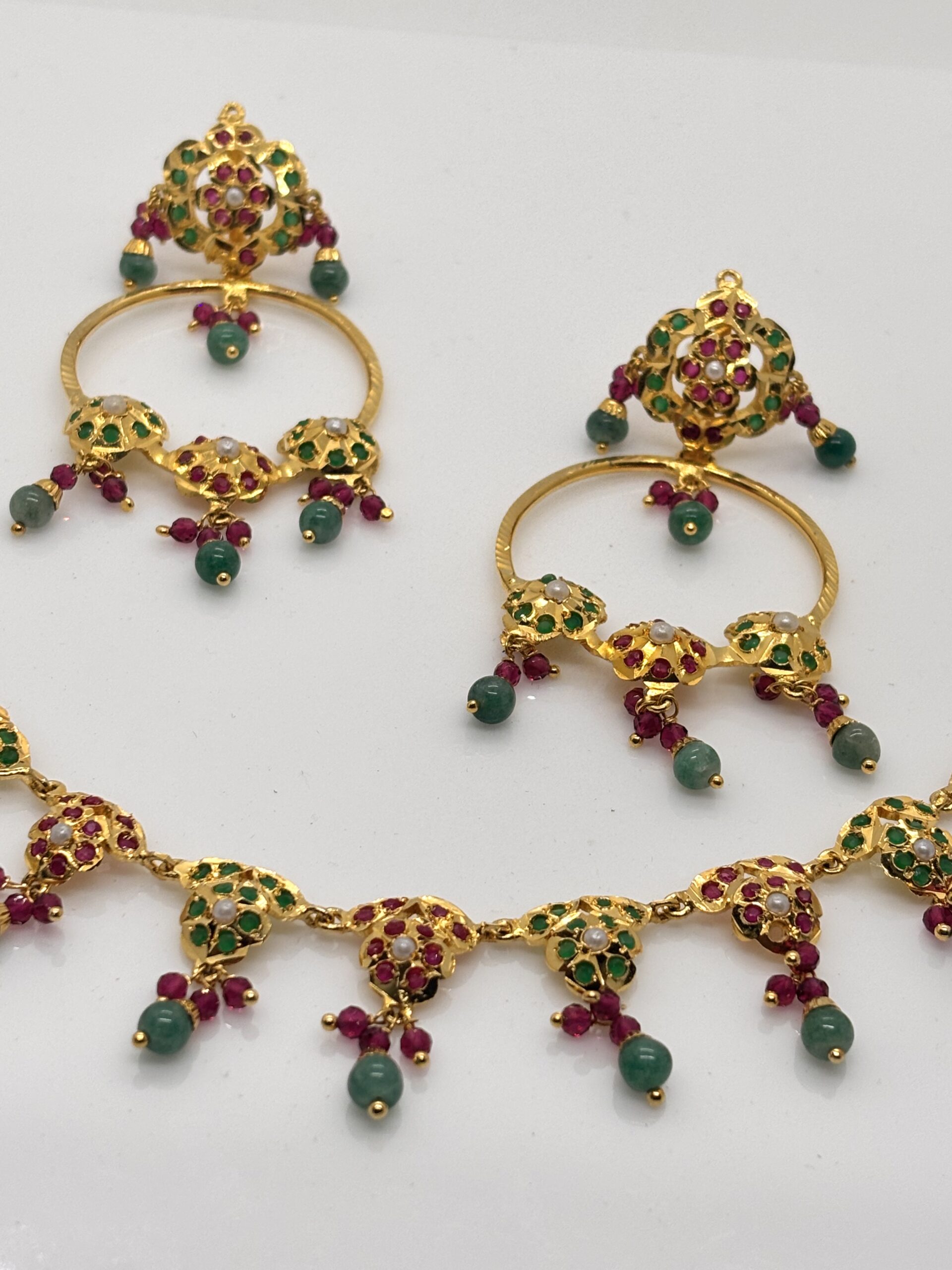 Lightweight Jadau Necklace Set with chandbali Earrings