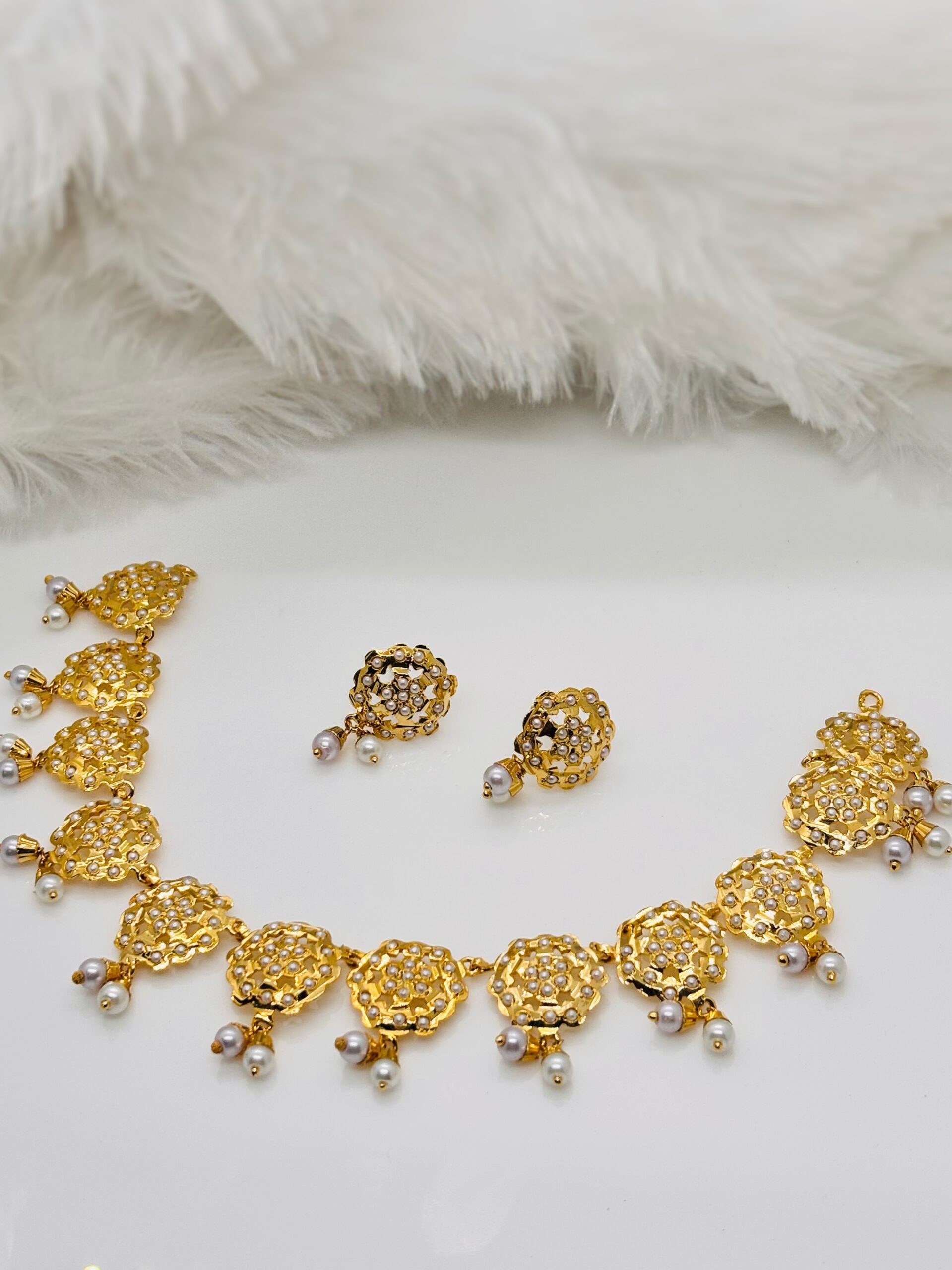 - Elegant Jadau necklace set crafted with intricate traditional detailing