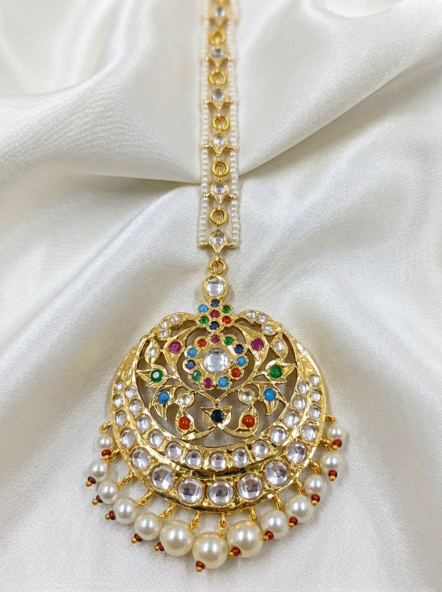 - Traditional Hyderabadi tika crafted in classic Polki style