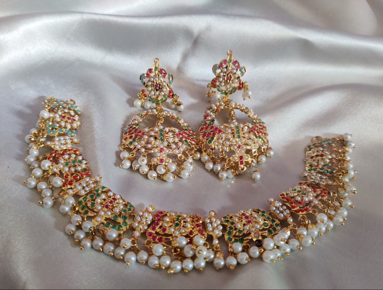 - Adorned with classic Navratan stones in vibrant multicolor hues