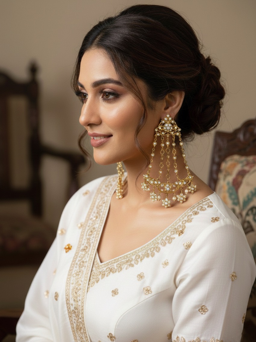 • Royal Jhoomer Silhouette: A majestic fan-shaped design inspired by the traditional Hyderabadi Passa.
