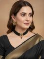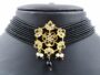 - Elegant black beaded choker set featuring a statement gold plated polki pendant with matching earrings.