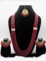 - Elegant Hyderabadi bridal jewellery set featuring a long necklace, maang tika and haathphool for a complete royal bridal look.
