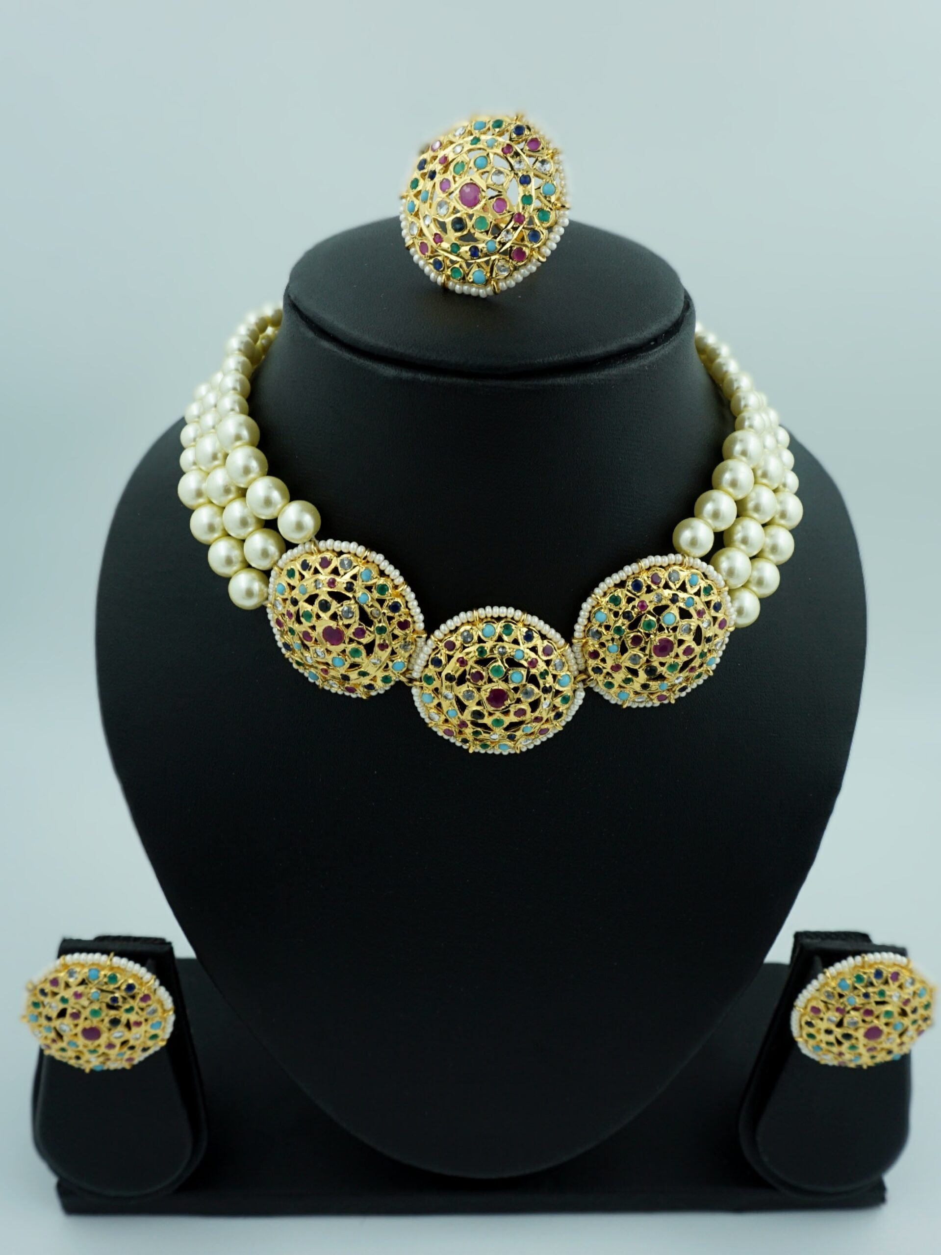 - Paired with stylish matching navratan earrings and statement ring for a coordinated set.
