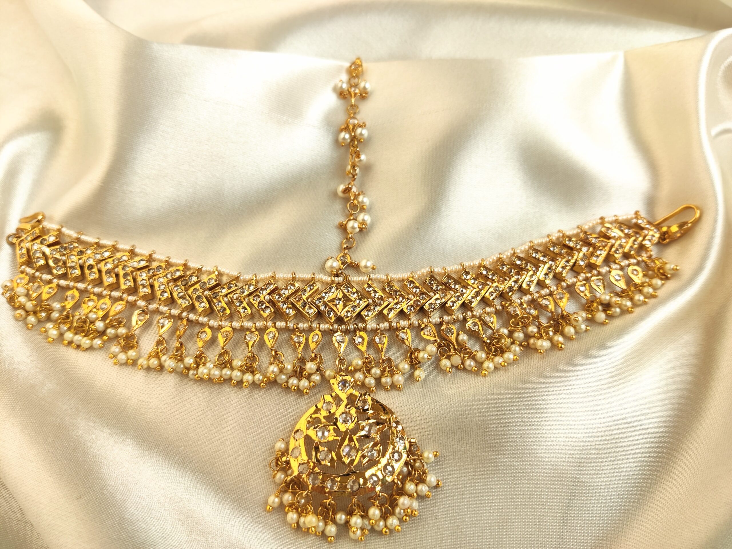 • Elegant Hyderabadi polki mathapatti crafted in a classic royal design.