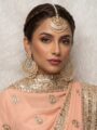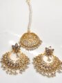 • Traditional Hyderabadi chandbali earrings with matching maang tika